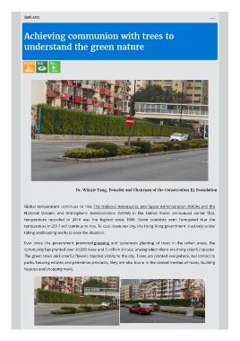 The green trees and colorful owers injected vitality to the city. Trees are planted everywhere, not limited to