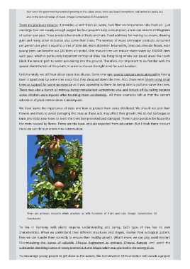 per person per year is equal to a tree of 30m tall, 46cm diameter. Meanwhile, trees can alleviate oods, even