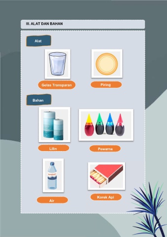III. ALAT DAN BAHAN Alat Gelas Transparan Piring Bahan Lilin Pewarna Korek Api Air