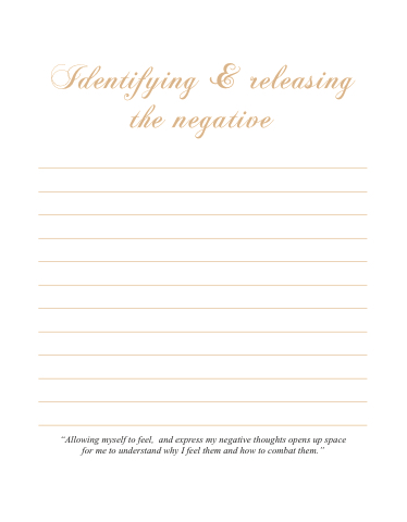 Identifying & releasing the negative “Allowing myself to feel, and express my negative thoughts opens up space for me to understand why I feel them and how to combat them.”