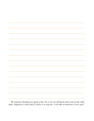 “My negative thoughts are apart of me. It’s a way on telling me that I am on the right path. Negativity is only bad if I allow it to stop me. I will take a break but I won’t quit.”