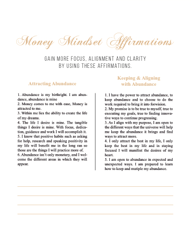 1. Abundance is my birthright. I am abun- dance, abundance is mine