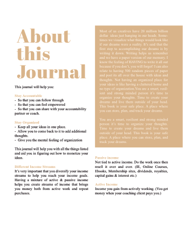 This journal will help you with all the things listed and aid you in figuring out how to monetize your ideas.