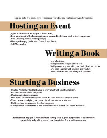 Here are just a few simple ways to monetize your ideas and create passive & active income.