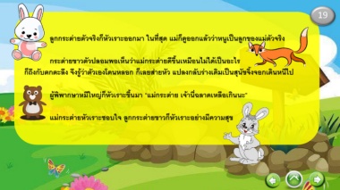ลูกกระต่ายตัวจริงก็หัวเราะออกมา ในที่สุด แม่ก็ดูออกแล้วว่าหนูเป็นลูกของแม่ตัวจริง