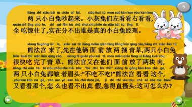 liǎnɡ zhī xiǎo bái tù chǎo qǐ lái. xiǎo huī tù men zuǒ kàn kɑn yòu kàn kɑn,