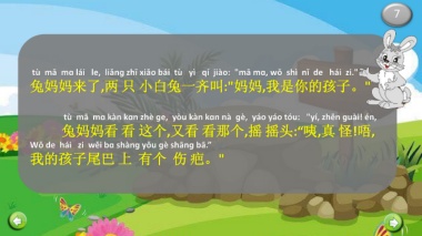 兔妈妈来了,两 只 小白兔一齐叫:"妈妈,我是你的孩子。"