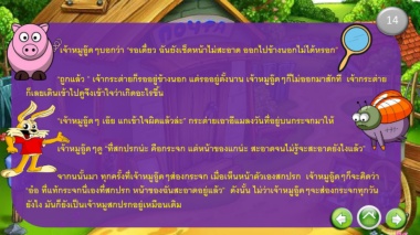 “เจ้ำหมูอู๊ดๆ เอ๊ย แกเข้ำใจผิดแล้วล่ะ” กระต่ำยเอำอึแมลงวันที่อยู่บนกระจกมำให้