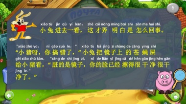 “小 猪呀,你 搞 错了,” 小兔 把 镜子上 的 苍 蝇 屎