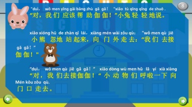小 熊 忽地 站 起来,向 门 外 走 去:“我 们 去接
