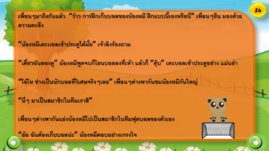 “เดี๋ยวฉันลองดู” น้องหมีพูดจบก็โยนบอลลงที่เท้า แล้วก็ “ตุ๊บ” เตะบอลเข้าประตูอย่าง แม่นย า