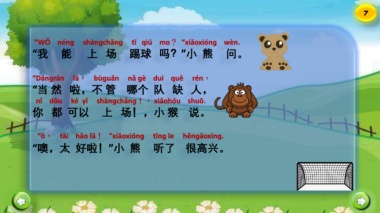 “WǑ nénɡ shànɡchǎnɡ tī qiú mɑ? “xiǎoxiónɡ wèn.