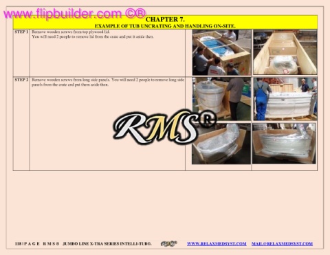 EXAMPLE OF TUB UNCRATING AND HANDLING ON-SITE.
