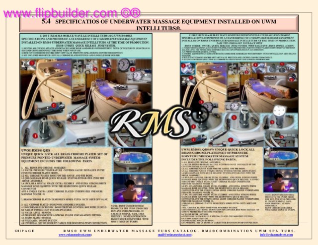 121 | P A G E                             R M S ®   U W M   U N D E R W A T E R   M A S S A G E   T U B S   C A T A L O G .   R M S ® C O M B I N A T I O N   U W M   S P A   T U B S .