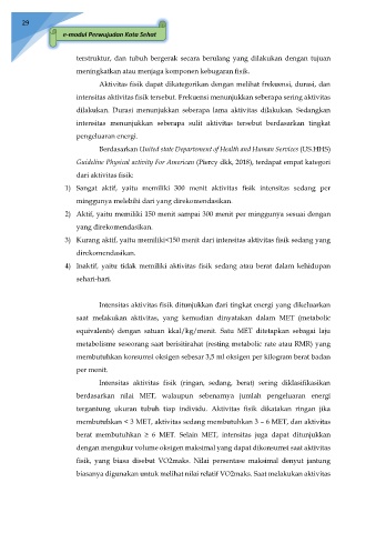 berat membutuhkan ≥ 6 MET. Selain MET, intensitas juga dapat ditunjukkan