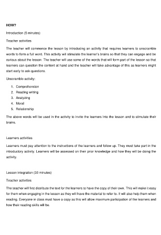The teacher will commence the lesson by introducing an activity that requires learners to unscramble