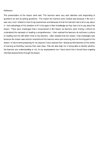 lesson. There were challenges that I encountered in the lesson as learners were finding it difficult to