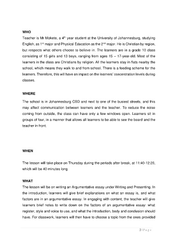 The lesson will be on writing an Argumentative essay under Writing and Presenting. In