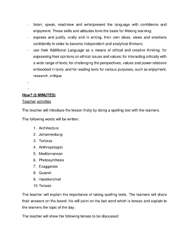 The teacher will introduce the lesson firstly by doing a spelling test with the learners.