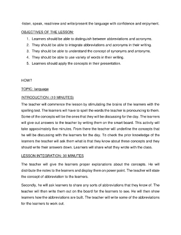 1. Learners should be able to distinguish between abbreviations and acronyms.