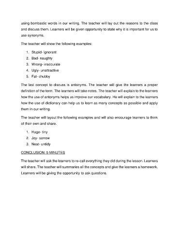 using bombastic words in our writing. The teacher will lay out the reasons to the class