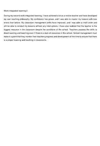 During my second work integrated learning, I have achieved a lot as a novice teacher and have developed