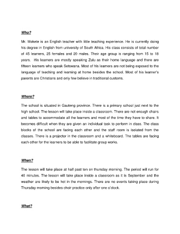 Mr. Mokete is an English teacher with little teaching experience. He is currently doing