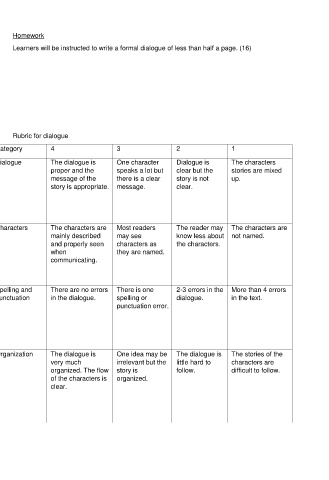 Learners will be instructed to write a formal dialogue of less than half a page. (16)