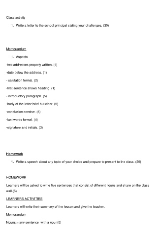 Learners will be asked to write five sentences that consist of different nouns and share on the class