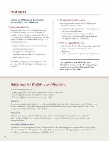 Next identify possible locations for the Columbarium. Consider often overlooked areas.