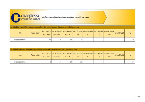 หนังสือรายงานสถิติคดีศาลทั วราชอาณาจักร ประจําปี พ.ศ. 2564