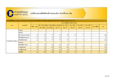 ศาล ประเภทคดี เกิน 1 เดือน ไม เกิน 3 เดือน ไม เกิน 6 เดือน ไม เกิน 1 ป ไม เกิน 2 ป ไม เกิน 3 ป ไม เกิน 4 ป ไม