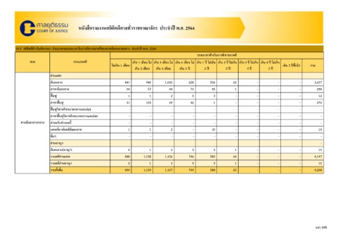 ศาล ประเภทคดี เกิน 1 เดือน ไม เกิน 3 เดือน ไม เกิน 6 เดือน ไม เกิน 1 ป ไมเกิน เกิน 2 ป ไมเกิน เกิน 3 ป ไมเกิน เกิน 4 ป ไมเกิน