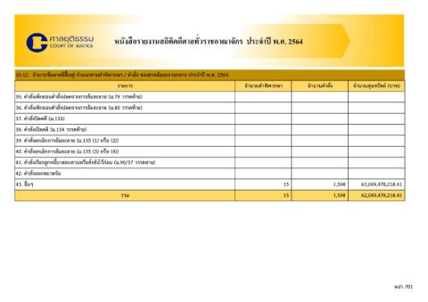 หนังสือรายงานสถิติคดีศาลทั วราชอาณาจักร ประจําปี พ.ศ. 2564
