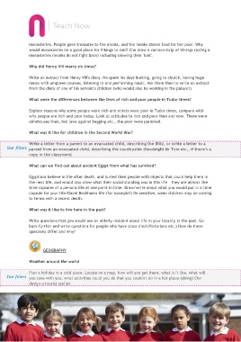 meals with umpteen courses, listening to and performing music. Ask them then to write an extract