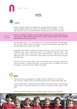 Links to o Discuss the children’s favourite nursery rhymes. Change them and experiment with new