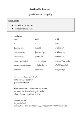 วันนี้คุณเป็นอย่างไรบ้าง? (พูดถึงอดีต was..อาจสอบถามหลังจากลูกค้าเล่นเสร็จแล้ว)