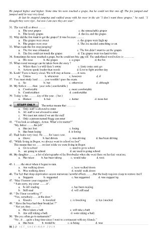 b. The fox could not touch the grapes d. The grapes were too hard to bite