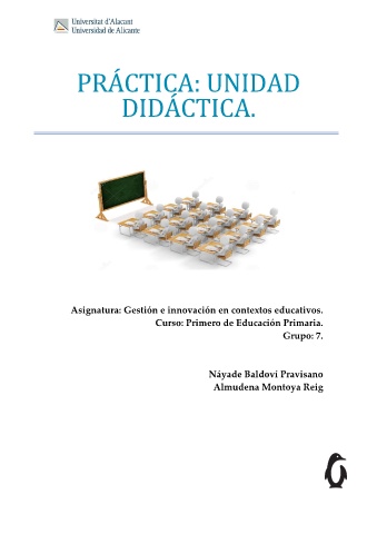 PRÁCTICA: UNIDAD DIDÁCTICA. Asignatura: Gestión e innovación en contextos educativos. Curso: Primero de Educación Primaria. Grupo: 7. Náyade Baldoví Pravisano Almudena Montoya Reig
