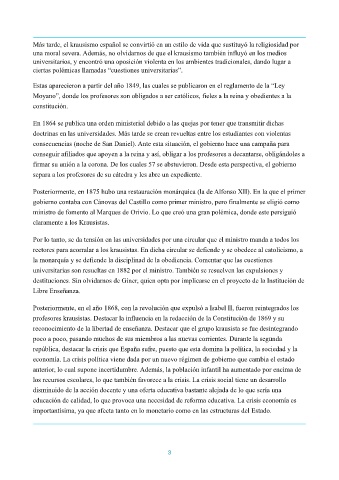 reconocimiento de la libertad de enseñanza. Destacar que el grupo krausista se fue desintegrando
