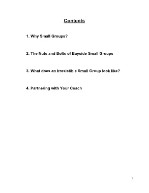 Contents 1. Why Small Groups? 2. The Nuts and Bolts of Bayside Small Groups 3. What does an Irresistible Small Group look like? 4. Partnering with Your Coach 1