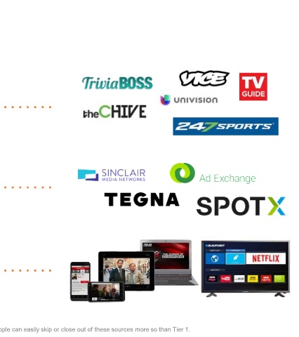 Completion rates average 70% because it is on all devices and all inventory sources. People can easily skip or close out of these sources more so than Tier 1.