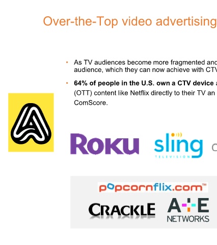 • 64% of people in the U.S. own a CTV device and half of U.S. Wi-Fi households now stream over-the-top