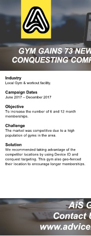 conquest targeting. This gym also geo-fenced 73 new memberships over the course of the