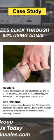We recommended Admix (Display + Across three locations, the advertiser saw pre-roll