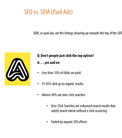 SEM, or paid ads, arethe listings showing up towards the top ofthe SERPs above Googlemaps, the local 3-pack, and natural listings.