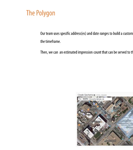 Our team uses specific address(es) and date ranges to build a custom polygons in order to determine the amount of devices seen at that location during