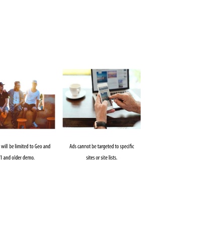 All ads mustbe targeted at 21 and  Targeting will belimited to Geo and  Ads cannot be targeted to specific