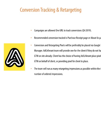 • Conversion and Retargeting Pixels will be preferably be placed via GoogleTag