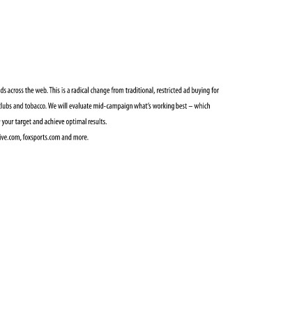 • Use the 21+ Network to advertise your normally restricted adsacross the web.This is aradical change from traditional, restricted ad buying for